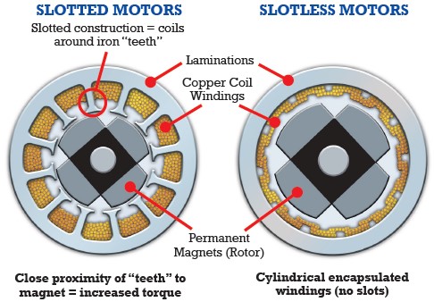 | Figure 2 Comparison of Slotted vs. Slotless Motors |