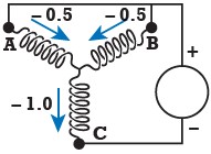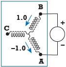 Connection producing a magnetic pole of reverse polarity aligned under the
