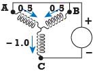 This method can be used to measure the Hall Effect sensor correlation table if this information is not available. This method involves injecting a fixed DC current into the motor phase windings to create a fixed electromagnetic pole on the stator periphery, as illustrated below. The motor is placed on a bench without any load coupled to