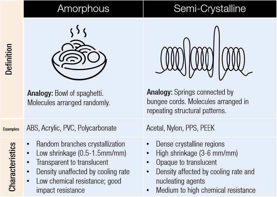 | Figure 3: Polymer molecular chains: Amorphous vs Semi-crystalline Thermoplastics |