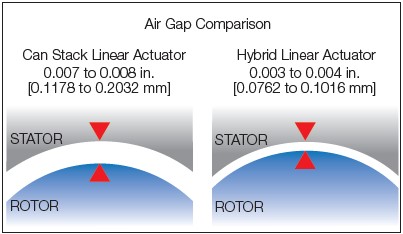 Figure 3: Air gap comparison Can Stack versus hybrid linear actuators.