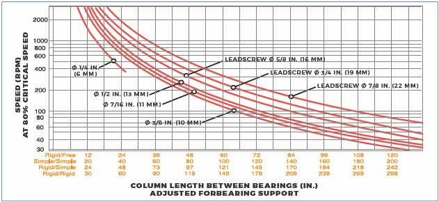More specifically, critical speed is defined by end fixity and leadscrew-shaft length and diameter: