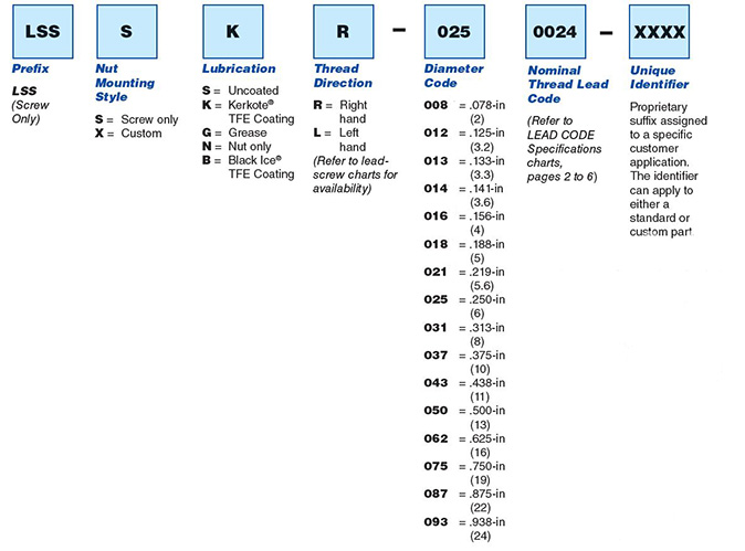 Neue Muttern und Gewindesteigungen werden ständig ergänzt. Wenden Sie sich bitte an Haydon Kerk Motion Solutions hinsichtlich der neuesten verfügbaren Optionen.