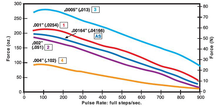 Bei L/R-Antrieben werden die Spitzenkraft und die Drehzahlen reduziert, bei Verwendung eines unipolaren Antriebs wird eine weitere Reduzierung der Kraft um 30 % erreicht.