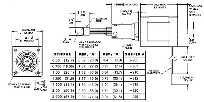 Haydon bietet einen elektronischen Miniatur-Hall-Effekt-Sensor, der die Endposition von Can-Stack- und Captive Linearen Hybrid-Aktuatoren überwachen kann. Der Ausgangspositionsschalter wird an der hinteren Buchse der Captive Linearmotoren von Haydon montiert. Dadurch kann der Benutzer Start-, Stopp- oder Ruhepositionen des Aktuators identifizieren. Je nach Vorliebe können die Kontakte normalerweise geöffnet oder normalerweise geschlossen sein. Das Schließen der Kontakte ist innerhalb einer Schrittposition wiederholbar und ermöglicht so kleine lineare Bewegungen wie 0,0013 cm pro Schritt. Es sind auch Mehrfachkontaktschalter verfügbar. Der Schalter ermöglicht Geräteherstellern die Möglichkeit, Bewegungen genauer zu überwachen, um eine bessere Steuerung und eine verbesserte Qualitätsüberwachung um erzielen. Bei Bestellung von Motoren mit Ausgangspositionsschalter muss der Teilenummer ein „S“ vorangestellt werden. Wenden Sie sich bitte an Haydon Kerk Motion Solutions für zusätzliche Bestellinformationen. Da eine Betätigungskraft von 283 g erforderlich ist, ist der Schalter möglicherweise nicht für kleinere Can-Stack-Aktuatoren geeignet.