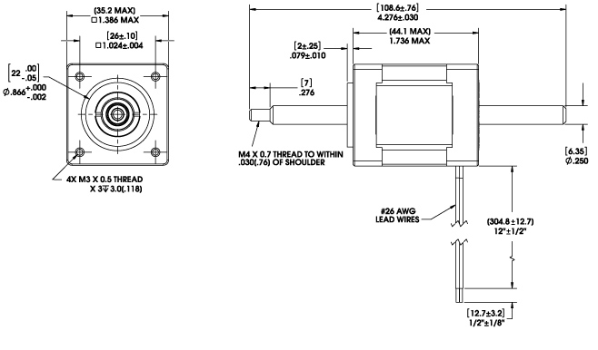 Hinweis A: Die Gewindespindel erstreckt sich bei bestimmten Captive und Non-Captive Motoren über den Drehgeber hinaus. Externe lineare Wellenverlängerung ist auf Anfrage erhältlich.