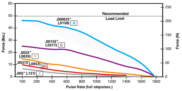 Bei L/R-Antrieben werden die Spitzenkraft und die Drehzahlen reduziert, bei Verwendung eines unipolaren Antriebs wird eine weitere Reduzierung der Kraft um 30 % erreicht.