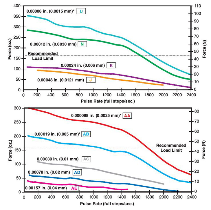 Bei L/R-Antrieben werden die Spitzenkraft und die Drehzahlen reduziert, bei Verwendung eines unipolaren Antriebs wird eine weitere Reduzierung der Kraft um 30 % erreicht.